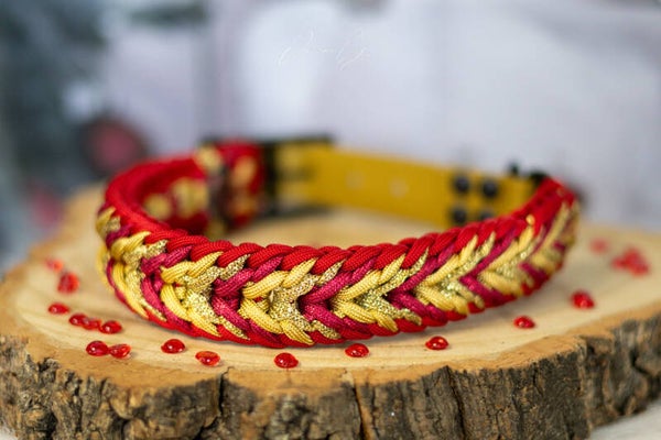 Collier de Noël REGLABLE en paracorde fait main, doré et rouge